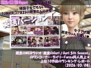3DCG 【エロフル倉庫】〈AIエロ画像動画1本〉『【▲20】英語★廻里の自撮りWEBラジオ『廻里のGuriGuri(グリグリ)5thシーズン』のワンコーナー:デイリーFanza同人売上★上位10作品のランキング・レポート[2026/03/08]』Libido-Labo2026-03-11発売のエロ漫画を安く読む方法